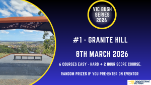 Vic Series 1, Sunday 8 March – Entries Close This Thursday The first Vic Series of 2026 is back near Melbourne and kicking off on Sunday March 8. We now have 1 more course on offer with 4 hard, one moderate and one easy! Granite Hills is now extended to include the magnificent new playground. Check out Eventor for more information Click here for more info about the 2026 Vic Series Share this