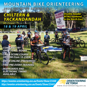 Double Header MTBO Weekend, April 18-19, North East Victoria Entries now open. These are events are also selection trials for the World MTBO Championships. Book early as accommodation in Beechworth is tight. There will be an informal dinner at the Nicholas Hotel in Beechworth on the Saturday night. See the information sheet on Eventor for more details. Share this