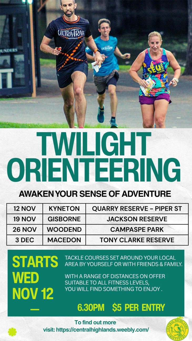 Central Highlands Twilight Orienteering, Macedon, Wednesday 3 December Come and join us for the last CHOC Twilight event for the year and explore Macedon 3rd December Starting at Tony Clarke Reserve, Waterfalls Rd, Macedon. Entry is just $5 per participant – cash preferred This includes a colour map and hire of electronic timing device. Choose from one of the five scatter courses between ranging between 3-9km. No previous experience is necessary, coaching provided and all fitness levels welcome. Participate individually or in a group it is up to you! Registration from 6.00pm Starts from 6.30pm to 7.00pm – Courses close 8pm Toilets at Tony Clarke Reserve. Share this
