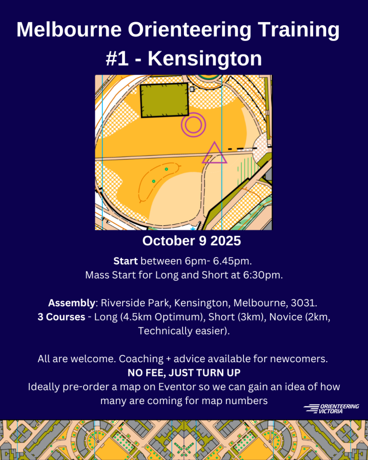 Training With Joe, Thursday 9 October, Kensington Everyone is invited to Joe’s first training session, on Thursday 9 November at Kensington. Training is free – simply come along and learn some new skills! Please put your name down in Eventor, for map printing purposes. Entries close 8th October ENTER HERE Share this